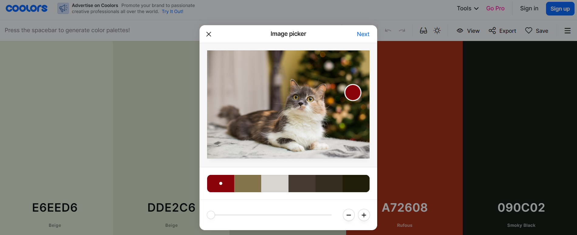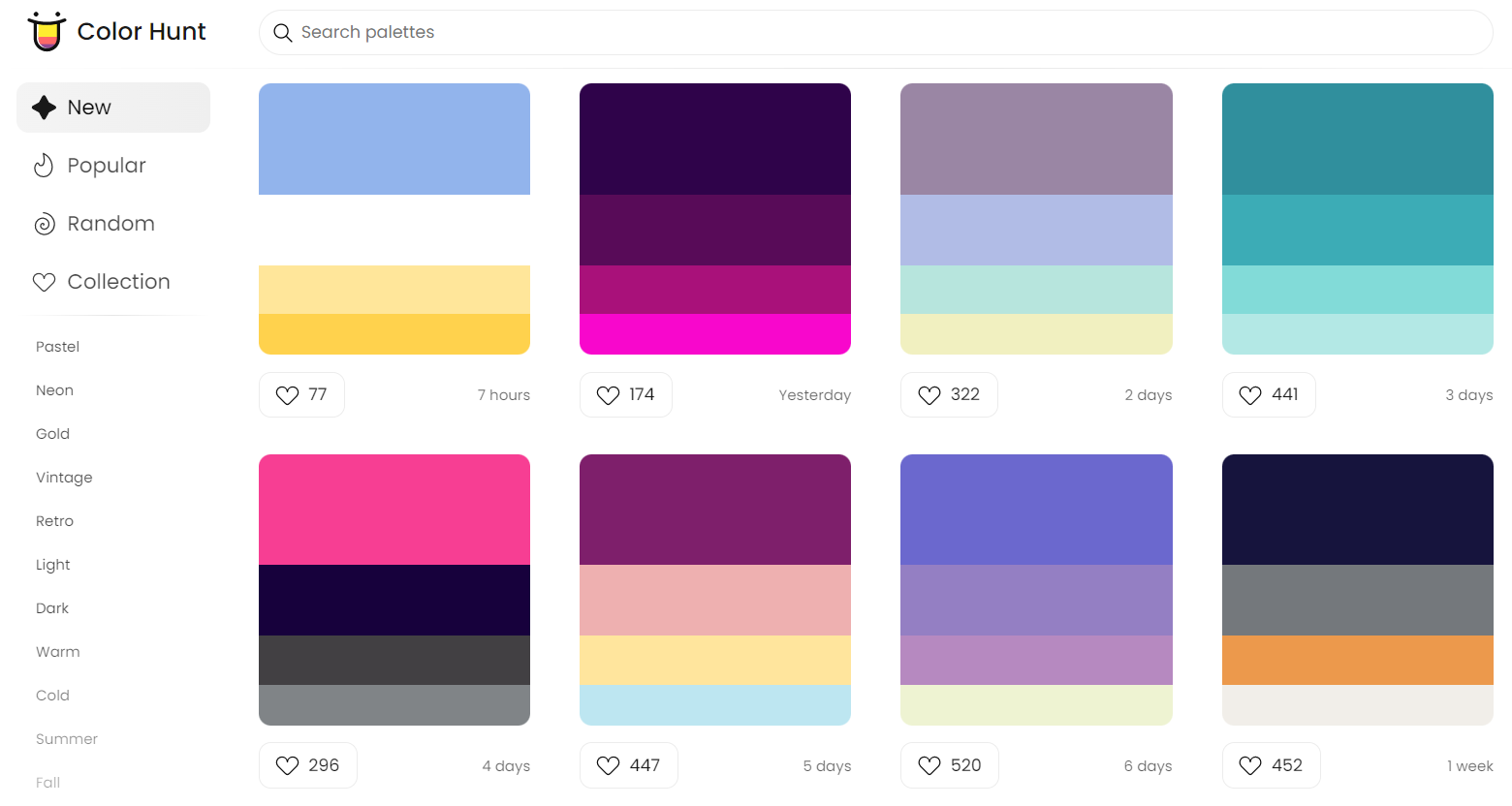 มีหลากหลายคู่สีให้เลือก อย่าง Pastel, Neon, Warm, Cool และมีแบบ Random ให้เวลาคิดไม่ออก ตอบโจทย์มากๆ ค่ะ แถมยังมีให้เราเก็บไว้เป็น Collection ด้วยนะ