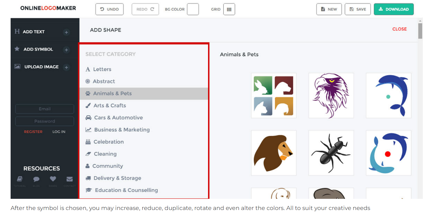เว็บนี้ก็มีให้เลือกแบบสวยเยอะมากเหมือนกัน แค่เพิ่มข้อความก็ได้โลโก้แล้ว มีให้โหลดใช้งานหลายไฟล์เช่น EPS PDF PNG JPEG แต่มีค่าใช้จ่ายนะคะ
